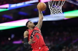 猛龙球员巴雷特本场比赛打得不错,进攻端虽然罚球不太理想,但整体效率还是不错,最后时刻他溜底线用一记扣篮帮助球队杀死比赛。