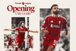 利物浦官推为海报配文:“萨拉赫是英超历史上首位打进10个揭幕战进球的球员!”