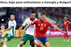 达尼·奥尔莫将因伤无法参加在埃尔切对阵格鲁吉亚及在巴利亚多利德对阵保加利亚的比赛。该球员于上周一抵达国家队集训营时,正如巴塞罗那足球俱乐部所报告,出现肌肉疲劳迹象。自那时起,通过治疗和负荷管理,相关症状已逐渐改善。因此原定今日该前锋仅需完成部分预定训练内容,但他在训练中表示左腿出现肌肉不适。